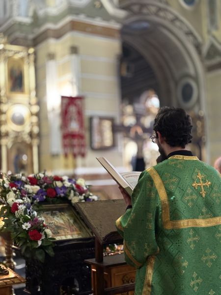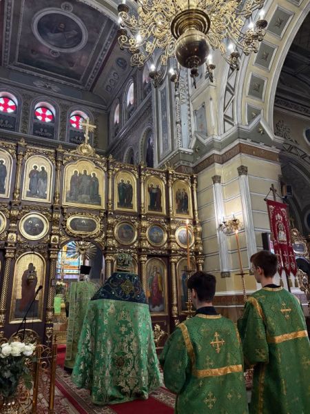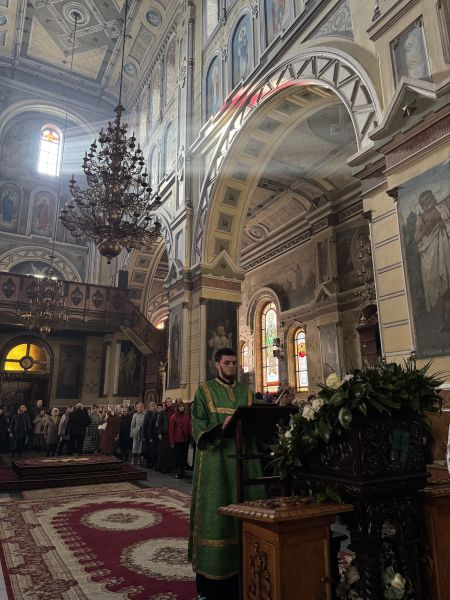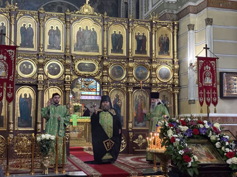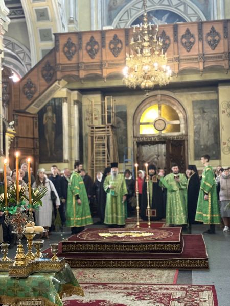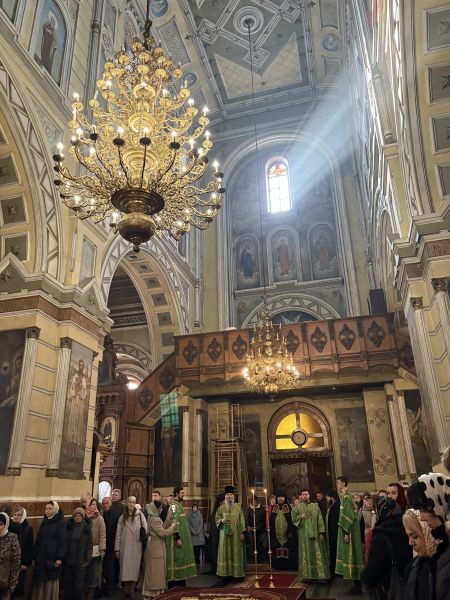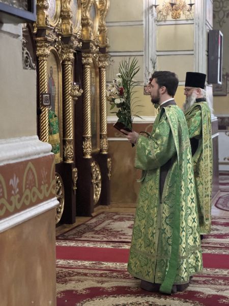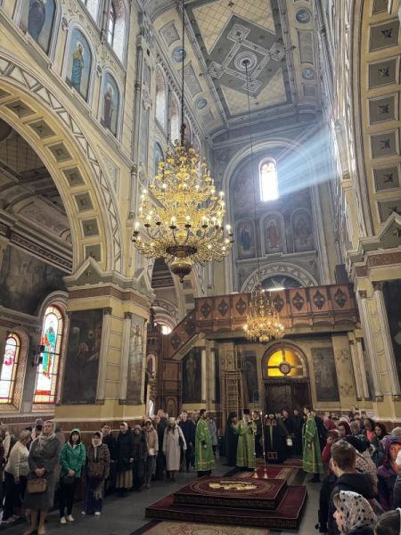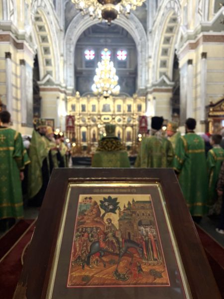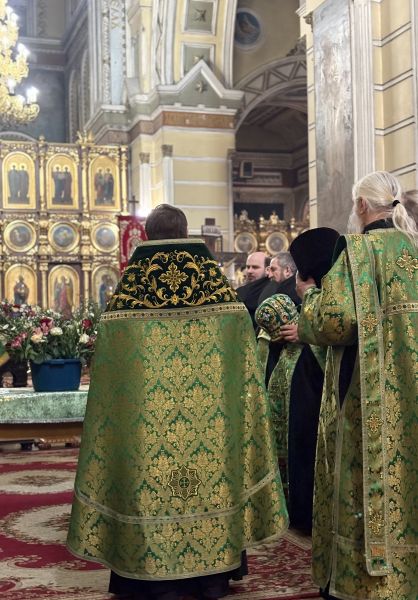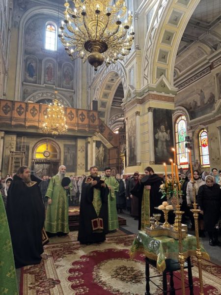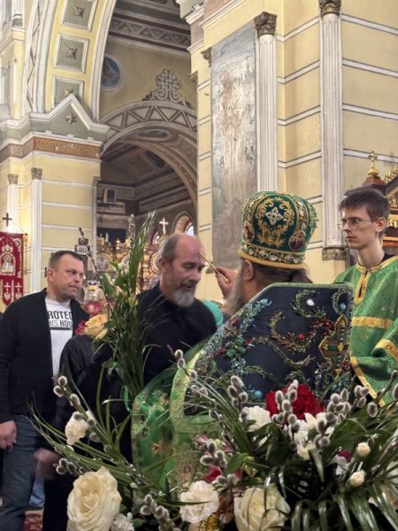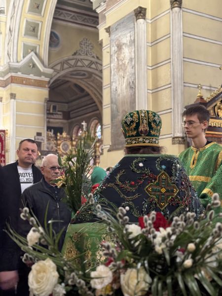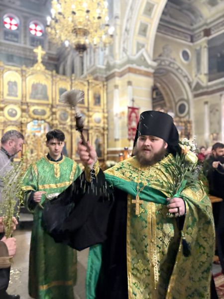 За вечірнім богослужінням наміснику співслужили братія обителі у священному сані. Після читання Євангелія було звершено освячення вербних гілок на пам’ять про події, що відбулися під час входу Спасителя до Єрусалима, які потім роздали парафіянам обителі.